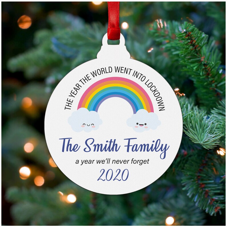 Lockdown Bauble in the UK - Personalised Lockdown Christmas Ornament 2021 - Christmas Lockdown Memories Tree Decoration - With Red Bag